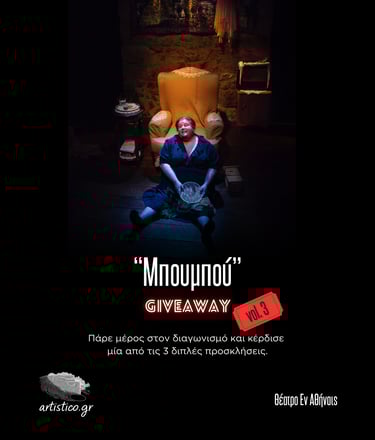Το artistico.gr στηρίζει το θέατρο και προσφέρει προσκλήσεις σε συνεργασία με σκηνές και δημιουργούς που αγαπούν την τέχνη.