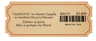 Από τη θέση του Θεατή: "ΟΙΔΙΝΟΥΣ" του Θανάση Τριαρίδη σε σκηνοθεσία Βαγγέλη Μάγειρου στο Θέατρο 104
