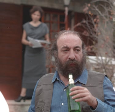 Ο άνδρας (Στάθης Σταμουλακάτος )την απειλεί ότι θα δημοσιοποιήσει την ταραγμένη της ψυχική υγεία, τις κρίσεις της, το ότι έχει κάνει απόπειρες αυτοκτονίας, η πρώτη απέτυχε και την σφαίρα την «έφαγε» από αστοχία στο πόδι του ο Δημήτρης πριν από χρόνια στο Παρίσι, γι’ αυτό και η πατερίτσα. Ο Δημήτρης είναι ο μόνος με πολιτικό όραμα , διαφοροποιημένος αλλά συνάμα χωλός και μόνιμα μεθυσμένος.