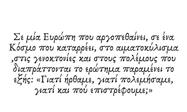 καλούμαστε να φοράμε, τον Πόλεμο σε κάθε του εκδοχή.