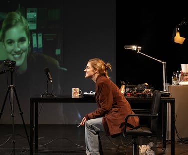 Στη σκηνική εκδοχή της Λητώς Τριανταφυλλίδου, η ηρωίδα αφηγείται την ιστορία της κατασκευάζοντας μπροστά στα μάτια μας ένα ζωντανό ντοκιμαντέρ. Η παράσταση κινείται ανάμεσα στο θέατρο και την κινηματογραφική καταγραφή, μετατρέποντας τη θεατρική σκηνή σε χώρο προσωπικής αναμέτρησης της ηρωίδας με την ιστορία της, όπου η αφήγηση λειτουργεί ως πράξη επιβίωσης.