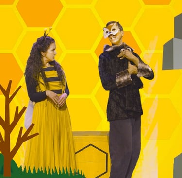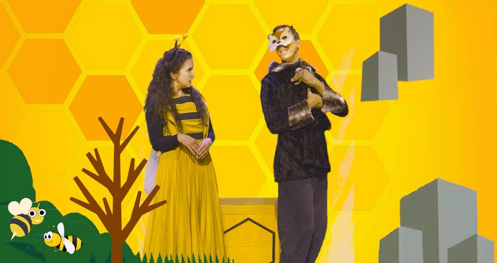 από δύο ηθοποιούς και ένα μουσικό μας μεταφέρουν μια ιστορία πρωτότυπη, που κυκλοφορεί από τις εκδόσεις Αρμός, και γεμίζει αγάπη τα παιδιά για τις μέλισσες, το περιβάλλον και τη σωστή διατροφή